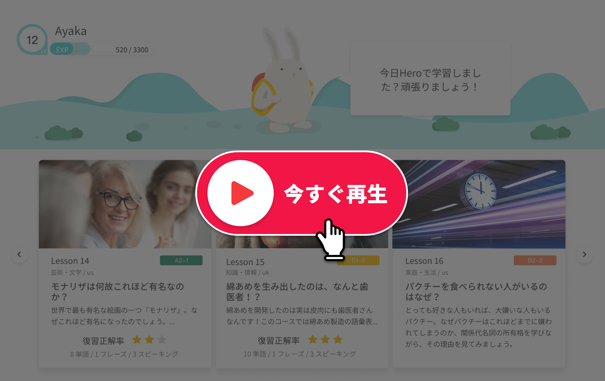 学習後のフィードバックをすることで、その時点での自分のレベルに合った動画を出してくれるのは有難いです。また、復習機能も充実しているので、やりっ放しにならずに、反復学習もできます。